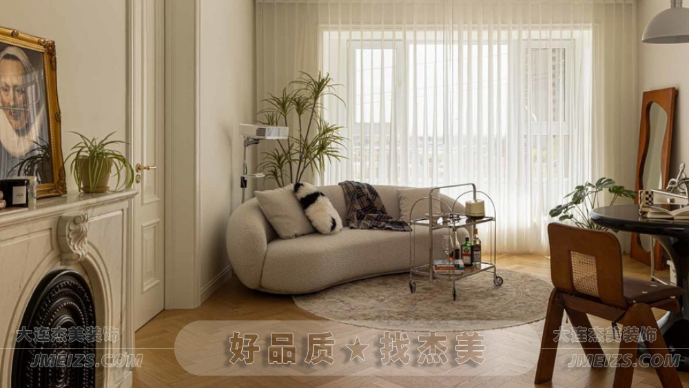本案設計需求:一個輕松舒爽的居住環境。同時也有一些特別的需求:只需要一間臥室,其他的空間都可以用來增加功能和美感。因此,大連杰美裝飾設計師在保留原有的戶型結構的基礎上,進行了一些改造和優化,讓這個家變得更加開放、互動和個性化。