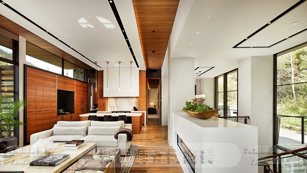 它讓整個(gè)廚房充滿了自然的光影,同時(shí)也將室外的美景一覽無(wú)遺地展現(xiàn)在眼前。