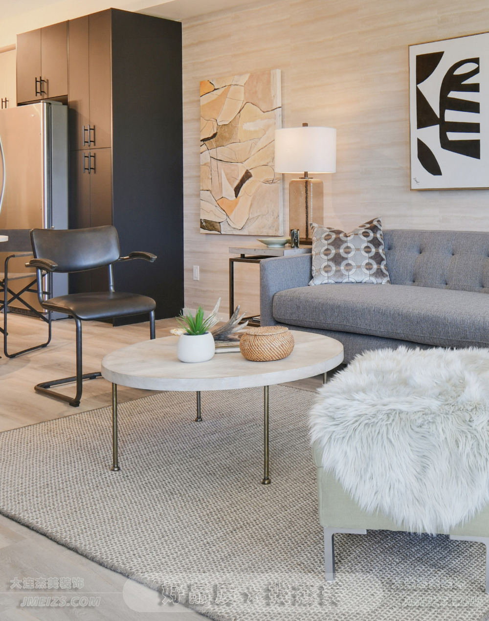 本案現(xiàn)代極簡(jiǎn)風(fēng)格的客廳中,杰美裝飾設(shè)計(jì)師讓每一處細(xì)節(jié)都呼吸著現(xiàn)代美學(xué)的氣息,同時(shí)又不失溫馨與舒適。