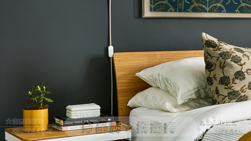 整個臥室的設計不僅僅是對色彩與材質的巧妙運用,