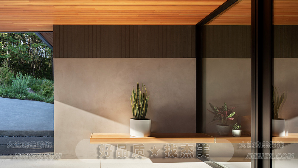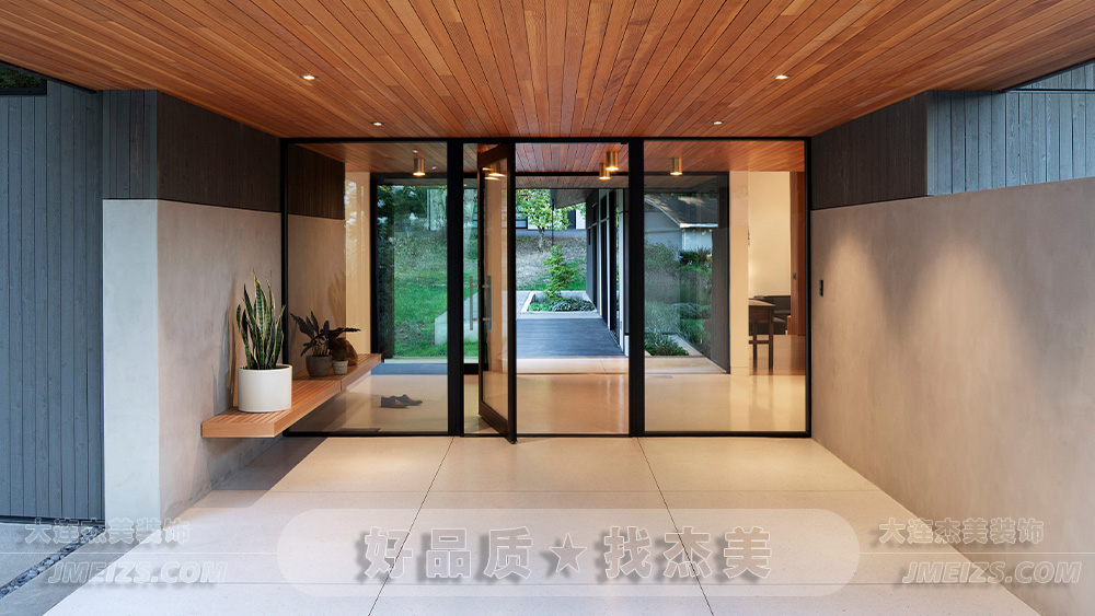 此外,門廊的設(shè)計(jì)中還巧妙地使用了懸浮木質(zhì)長凳,