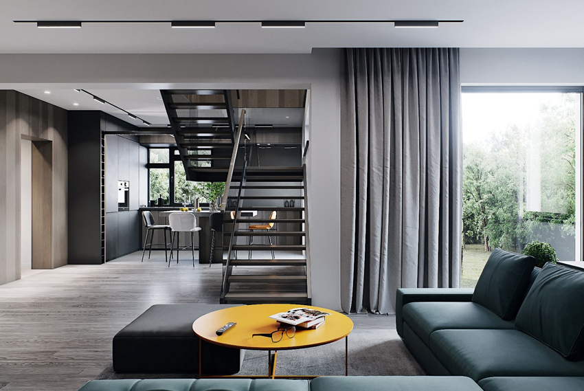 設(shè)計說明:此方案為北歐風(fēng)格,主體采用北歐風(fēng)的色系搭配,同時融入輕奢風(fēng)格的代表元素,搭配原木柜體及墻面裝飾。增加空間的靈動感。通過飽和度較高的墨綠色乳膠漆和原木風(fēng)格元素以及北歐配色的家具的對比,使得視覺沖擊感較強,對客戶的新引力增大,空間雖采用了較暗的顏色進行配色,但卻不失整體清新的感覺。樓梯踏步采用玻璃材質(zhì),在吸引客戶好奇心的同時,為空間整體效果增添了新鮮元素。較高的舉架,進行局部的二層搭建,流出部分區(qū)域作為挑空,增添餐位的同時,也不失整個空間的開闊。